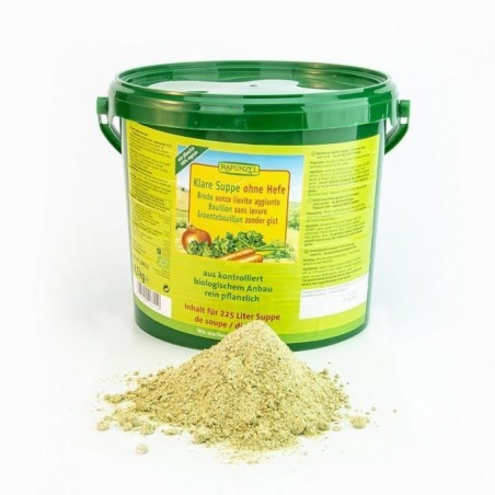 Les nombreux légumes et les différentes herbes aromatiques confèrent à ce bouillon son goût équilibré et corsé. Il est purement végétal, préparé sans levure et sans sucre. Idéal pour relever et sublimer les soupes, sauces et plats à base de légumes ou bien à déguster tout simplement comme bouillon clair. A conserver dans un endroit sec et frais.