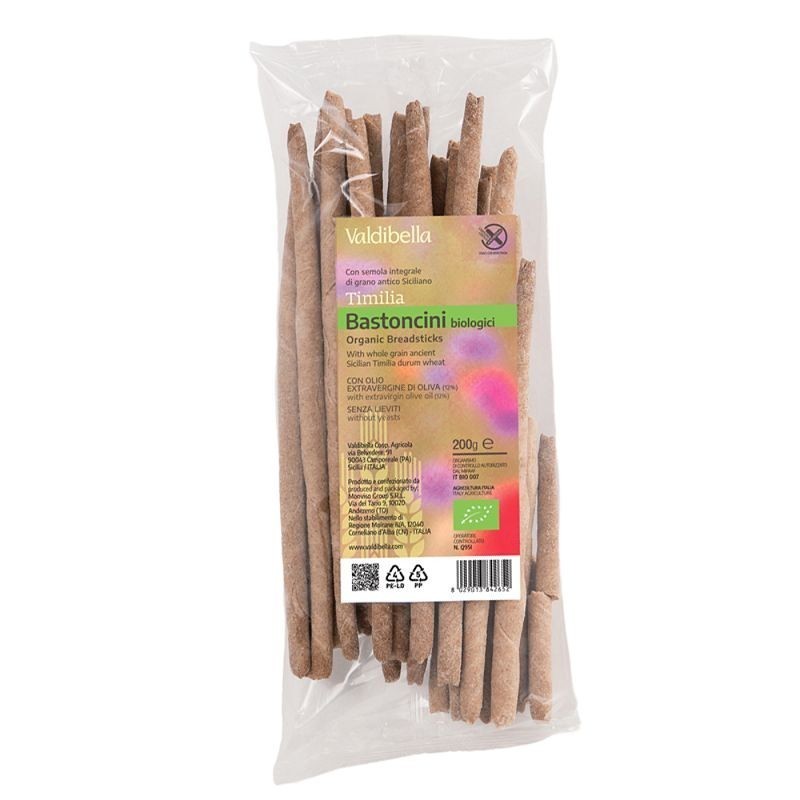 Corsés et rugueux, ces gressini de Timilia sont confectionnés sans levure. Peu d'ingrédients, huile d'olive et de semoule de blé dur ancien (Timilia), font de ce produit un produit différent de ses semblables.