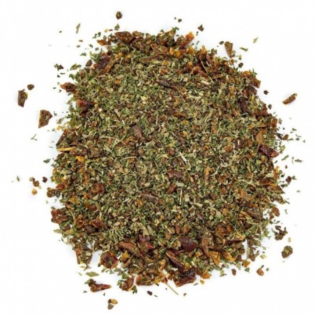 Le mélange d'épices idéal pour accompagner vos plats et salades inspirés de la cuisine italienne. Composé de tomates et poivrons déshydratés, des herbes du soleil basilic et origan, et de poivres, vous ajouterez un belle touche méditerranéenne à vos pâtes, tartes salées, pizzas et salades.