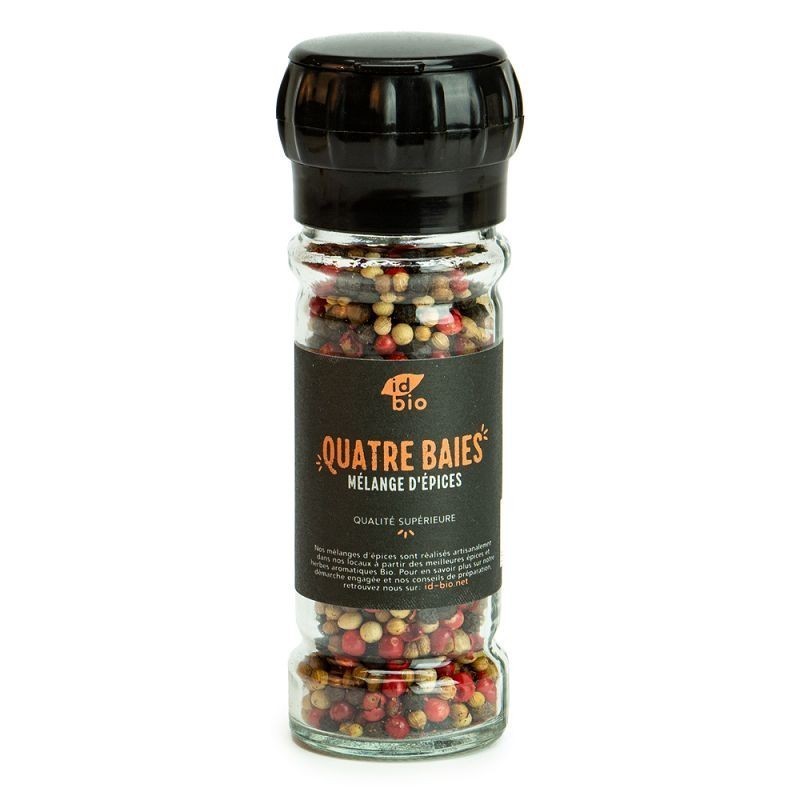 Id Bio a sélectionné les différentes épices servant à la réalisation de ce mélange auprès de petites coopératives d'agriculteurs, dans une démarche équitable. Fortement aromatique et légèrement piquant, ce mélange relève parfaitement viandes et poissons grillés, fromages, pommes de terre et légumes. Dans ce mélange quatre baies bio, vous trouverez des baies entières, qui ne révèleront leurs saveurs qu'au moment de leur utilisation. A moudre dans un moulin ou au mortier.