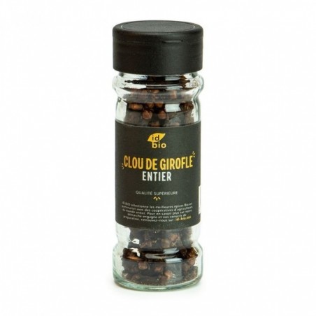 Id Bio a sélectionné pour vous ce clou de girofle bio auprès de petites coopératives d'agriculteurs en Inde. Les boutons floraux de ce grand arbre en forme de petit clou, d'où son nom, pourront être utilisés en entier ou en poudre. Son odeur et son goût puissant en font un incontournable de la cuisine. Entier, vous pourrez le piquer dans un oignon pour lajouter à la cuisson des lentilles ou dans le bouillon d'une blanquette.