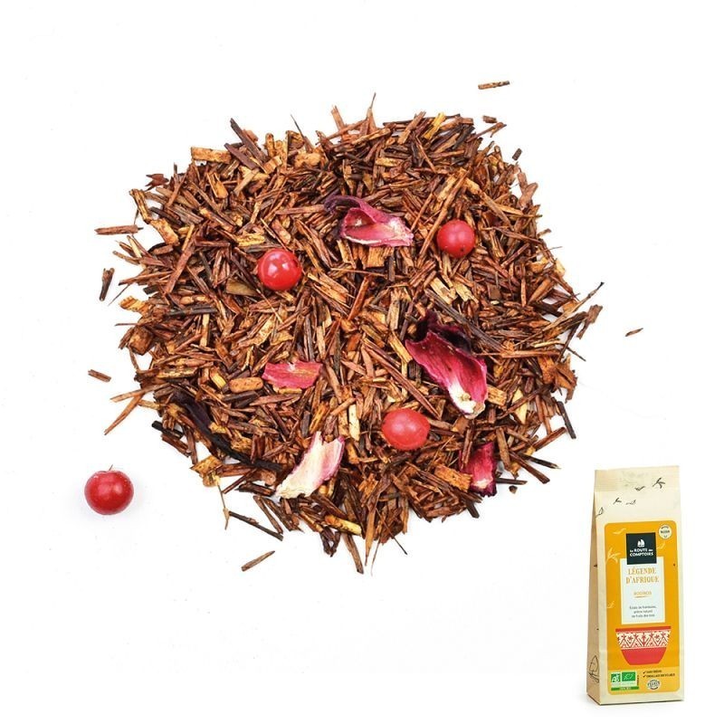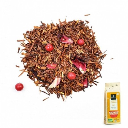 Ingrédients : Rooïbos d'Afrique du Sud*, hibiscus*, framboise*, arôme naturel de fruits des boies*, baies roses*.