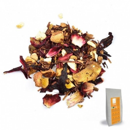 Rooibos dAfrique du Sud * (25%), hibiscus*, dés de pomme*, cannelle* (12%), écorces de citron* et dorange*, arôme naturel d'abricot* (2%), extrait de vanille* (1,5%).*: Ingrédients issus de l'agriculture biologique