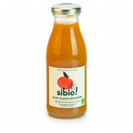 Ce savoureux nectar de pêche blanche ravira vos papilles et vous transportera en été ! Il est composé de pêche blanche (55%), d'eau et de sucre de canne, le tout issu de l'agriculture biologique. Les pêches ont été produites par Pierre Reig, à Bouleternère (66).