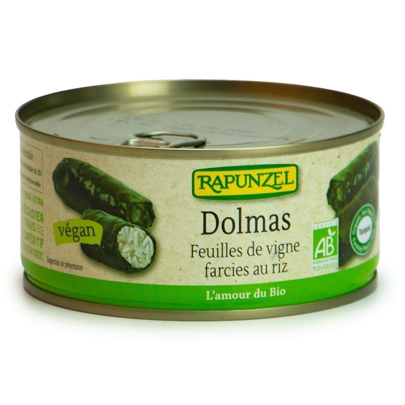 Spécialité juteuse et fraîche de la cuisine orientale : provenant du projet Turquie de Rapunzel. Tout à fait typique de la Méditerranée orientale. Les tendres feuilles de vigne sont farcies à la main avec du riz et des épices, puis marinées dans l'huile d'olive. Après ouverture à conserver au réfrigérateur et à consommer rapidement.