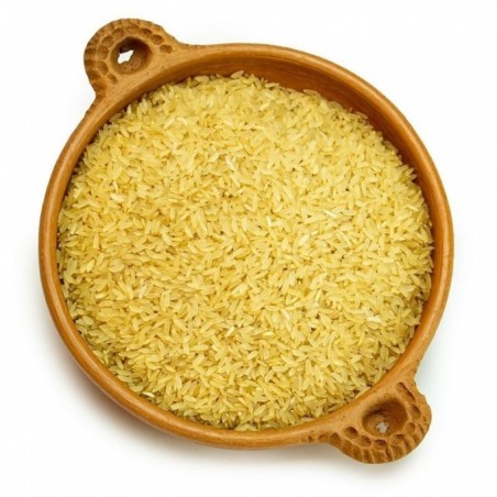 Riz cultivé sur les terre de Camargue, certifié IGP. Le procédé d'étuvage permet de garder une texture ferme, facilitant le maintien au chaud et rend le riz incollable.