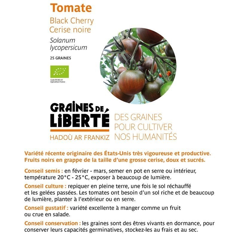 Variété récente originaire des États-Unis très vigoureuse et productive. Cette variété de tomate donne des fruits noirs en grappe de la taille d'une grosse cerise, doux et sucrés.
