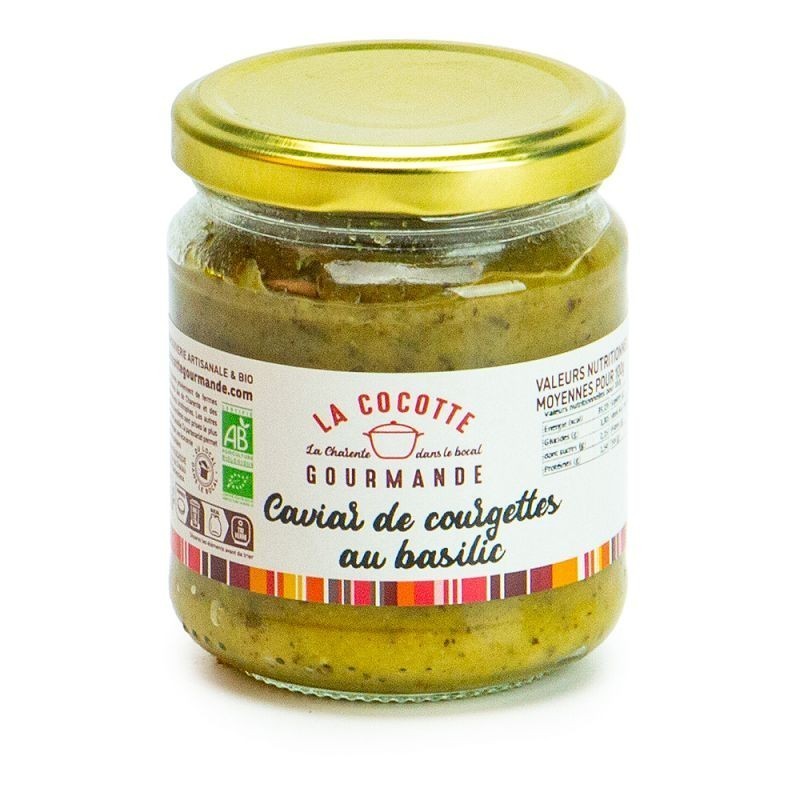 Ingrédients : courgettes (92%), huile d'olive, ail, sel.