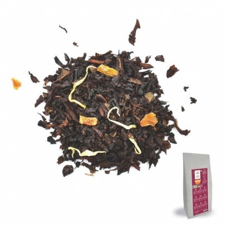 De petits morceaux d'abricot, parsemés sur un thé noir bio de qualité supérieure, parfumé d'une huile essentiel certifié de mangue : tout un programme de douceur fruitée… Un mélange ensoleillé a apprécié à toute heure de la journée. Passeport pour un embarquement immédiat vers des tropiques savoureux de douceurs fuitées. Se déguste aussi bien froid que chaud, à toute heure !